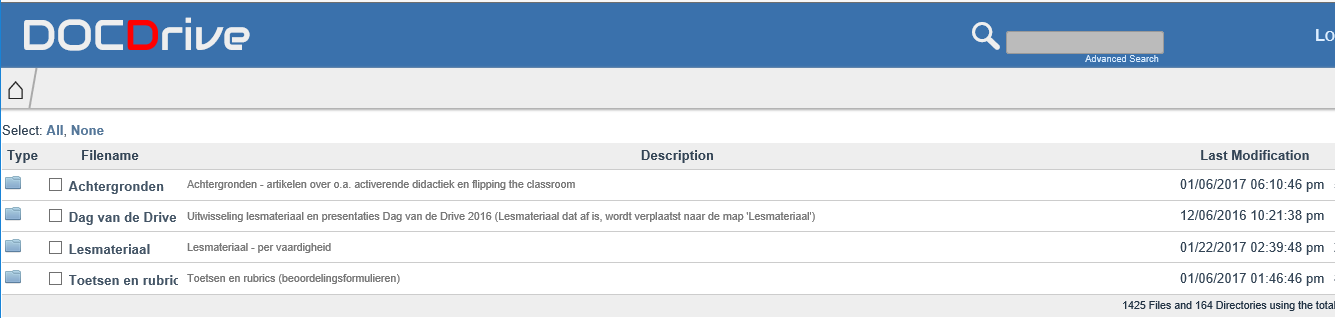 Naast It's Learning gebruik ik ook weleens materiaal van 'het schoolvak Nederlands'. Sinds twee jaar ben ik lid van de Facebookgroep 'Leraar Nederlands', waar leden (les)materiaal op een drive kunnen plaatsen. Tot nu toe heb ik er alleen maar lesmateriaal afgehaald, maar ik ben zeker van plan om er later ook zelf lesmateriaal op te zetten. Op dit moment heb ik het druk met mijn werk, studie en mijn twee kinderen. Als ik meer tijd en ervaring heb, waarin ik goede en activerende lessen heb bedacht, wil ik ook meer lesmateriaal buiten het Leon van Gelder gaan delen. Hieronder vindt u een screenshot van de drive van het schoolvak Nederlands: (https://drive.hetschoolvaknederlands.nl/)