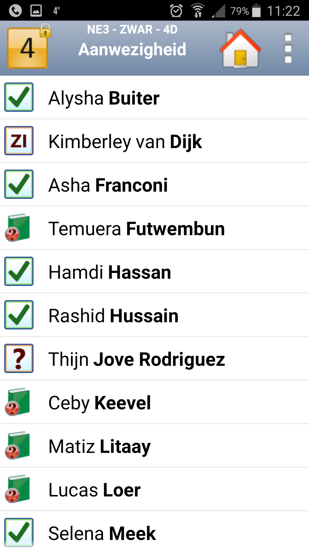 2.2.5. De docent toont aan dat hij kan werken met de elektronische leeromgeving, porfoliosoftware, (leerling gerelateerde) administratieve systemen van de school. Hiervoorwil ik graag mijn ICT-didactiekportfolio aanvoeren als bewijs. Daarnaast heb ik eerder al aangegeven dat ik op school veel werk met de elektronische leeromgeving 'It's Learning' en met het administrateve systeem 'Magister'. Soms open ik voor de administratie Magister op het digibord, maar meestal voer ik de absenten in via de app van Magister. Hieronder vindt u een screenshot van hoe ik mijn absentie (via mijn mobiel) bijhoud: